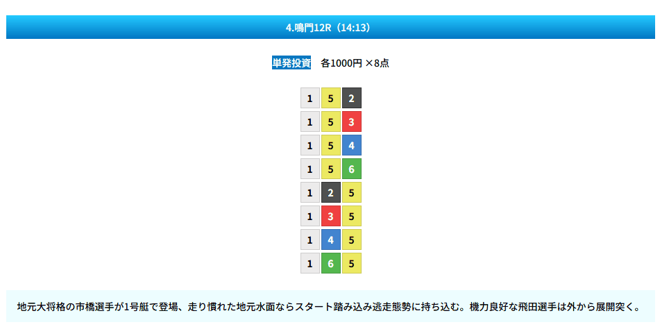 この日は特に鳴門開催の的中率が高く、多くの予想サイトが好結果を残しました。